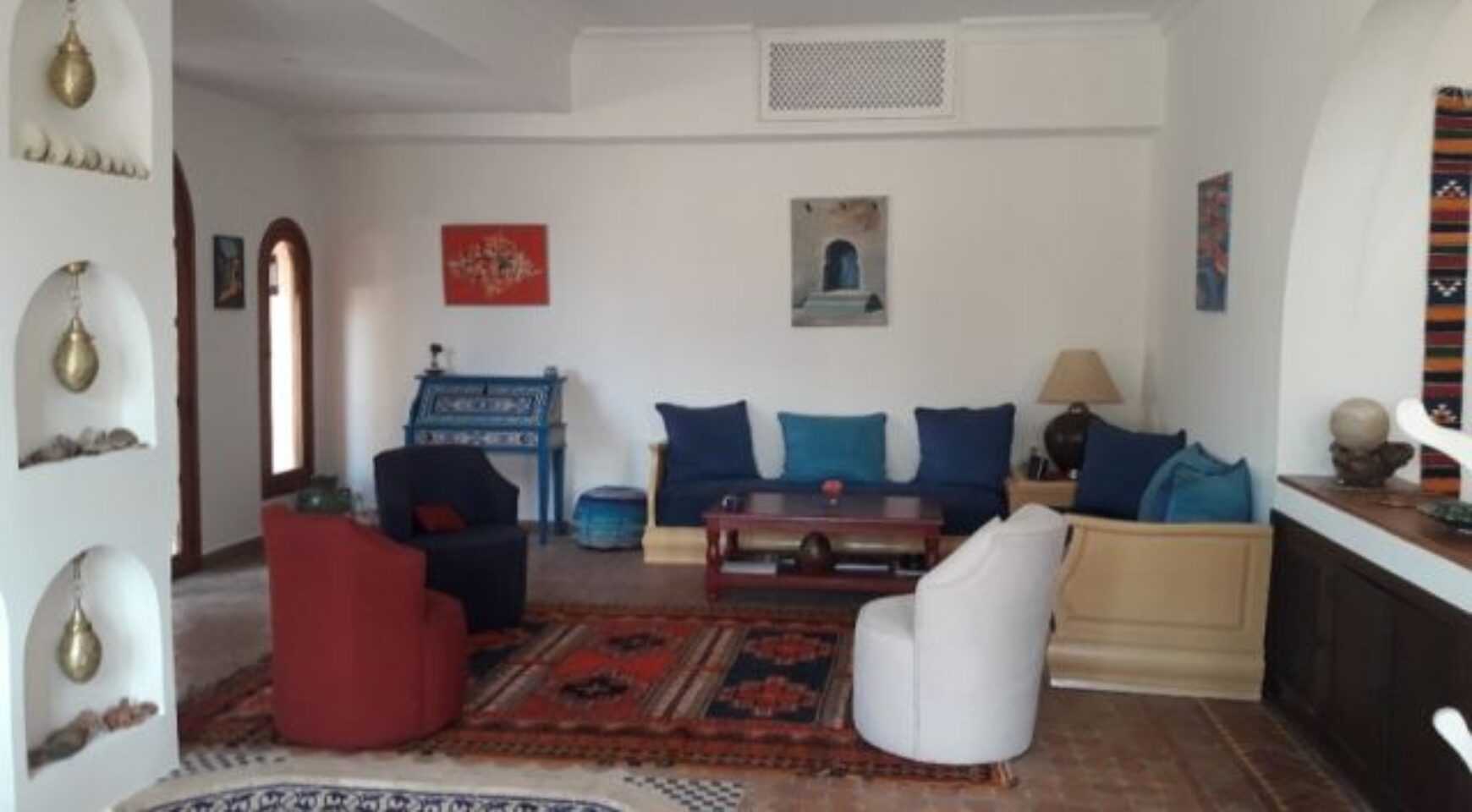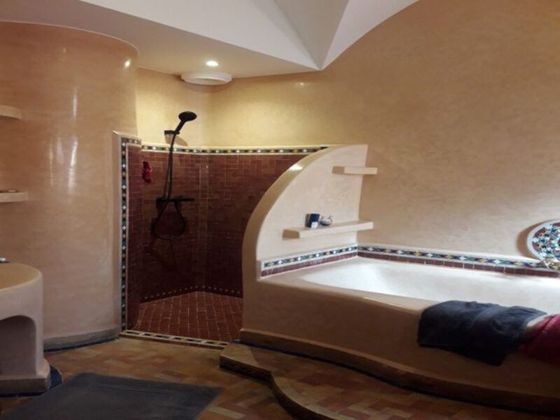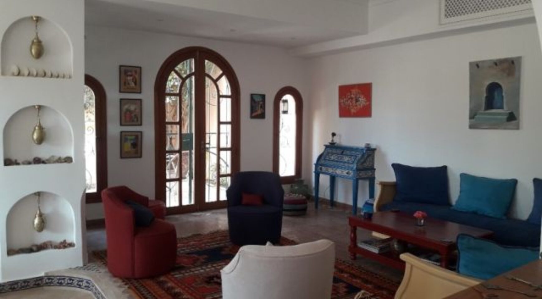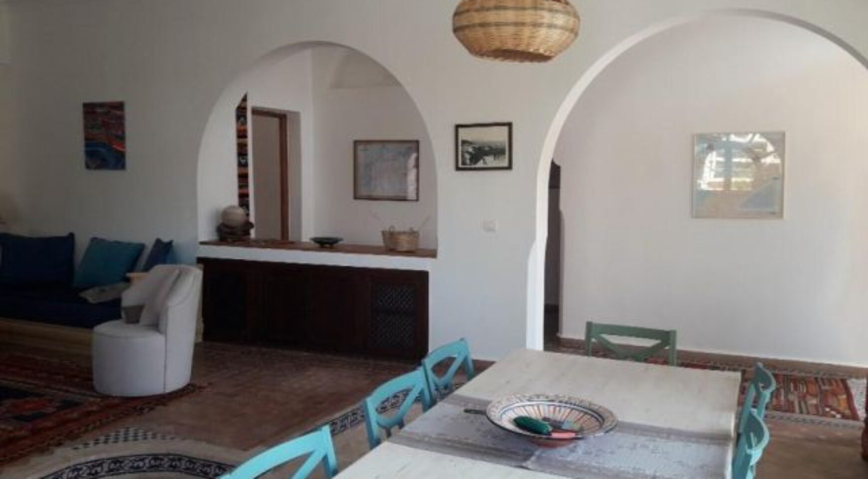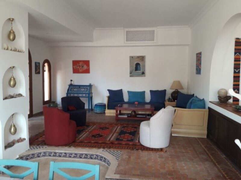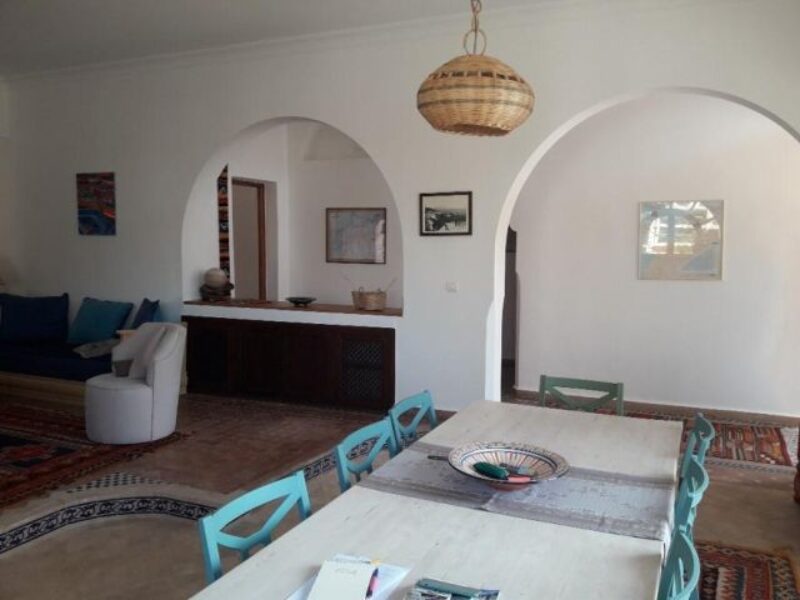 Superbe villa située à Talborjt composée d’une grande salle à manger colorée et agréable, d’un salon porte fenêtre sur terrasse, de trois chambres dont une parentale avec chacune leur salle de bain, d’une cuisine ouverte moderne toute équipée. Cette villa vous offre également une magnifique terrasse extérieure de 80m2 ainsi qu’un jardinet.